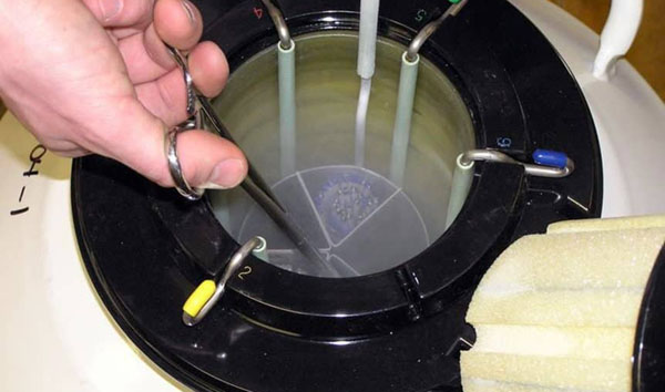 詳細的精液清單應易于取用,以便可以快速定位并從儲罐中取出吸管,以避免暴露在環境溫度下。從液氮罐中取出吸管時,技術人員必須將罐,甘蔗和未使用的精液吸管在罐的頸部保持盡可能低的高度。zui佳管理方法是將所有未使用的吸管保持在儲罐頸部的霜凍線以下。