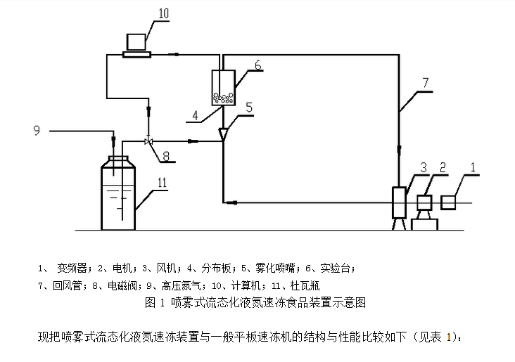 等進(jìn)行速凍研究,但采用噴霧式流態(tài)化液氮速凍裝置對果蔬進(jìn)行瞬時凍結(jié)的研究鮮見報道。