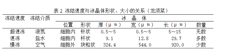 凍結(jié)速度與冰晶體形狀、大小的關(guān)系[13]
